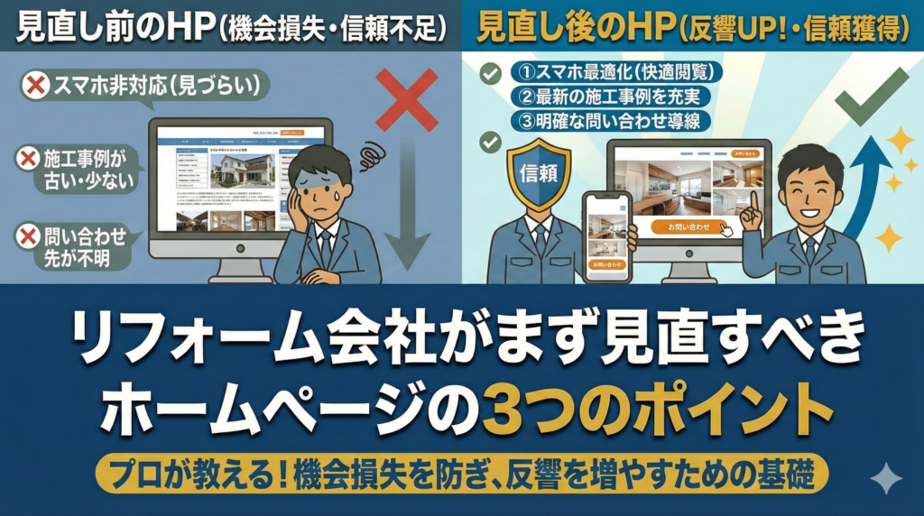 リフォーム会社のトップページで必ず伝えるべき3つのこと【問い合わせが増える構成】