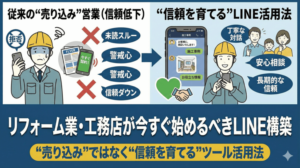 リフォーム業・工務店が今すぐ始めるべきLINE構築|“売り込み”ではなく“信頼を育てる”ツール活用法