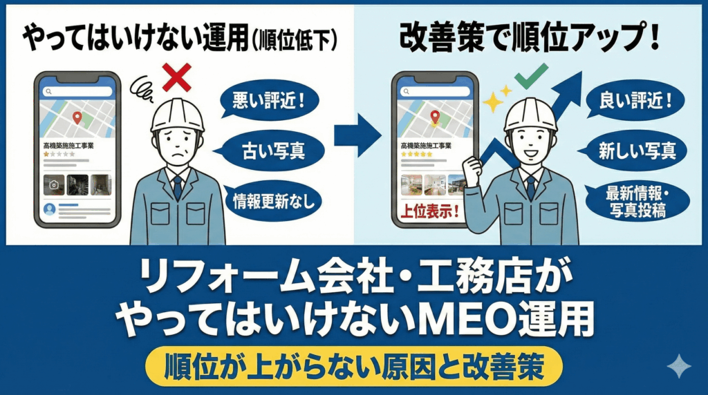 リフォーム会社・工務店がやってはいけないMEO運用|順位が上がらない原因と改善策