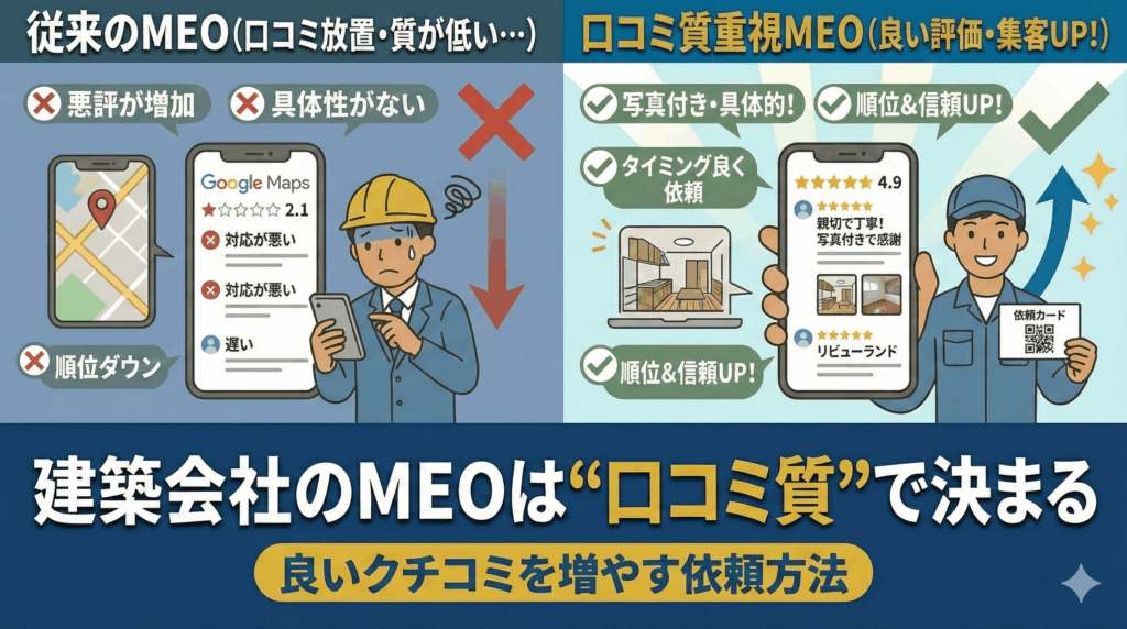 建築会社のMEOは“口コミ質”で決まる|良いクチコミを増やす依頼方法
