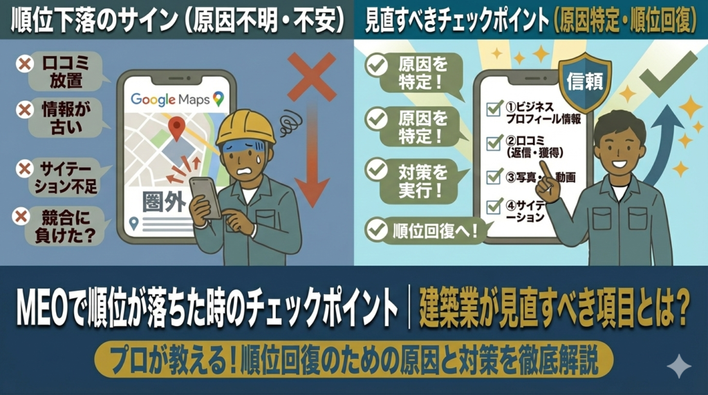 MEOで順位が落ちた時のチェックポイント|建築業が見直すべき項目とは?