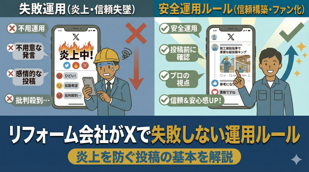 リフォーム会社がXで失敗しない運用ルール|炎上を防ぐ投稿の基本