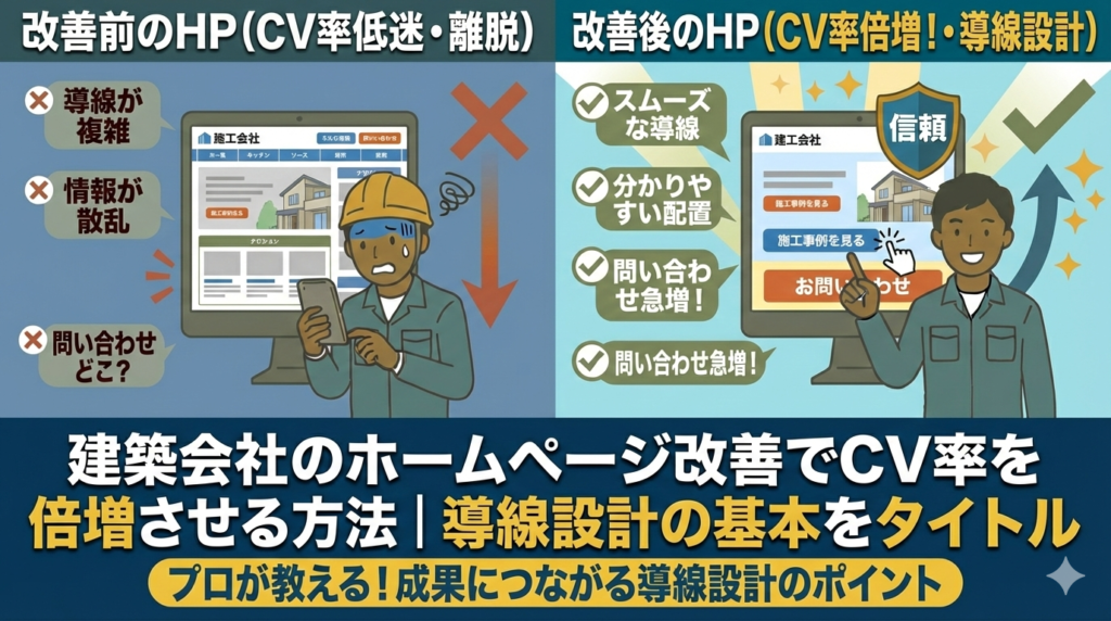 建築会社のホームページ改善でCV率を倍増させる方法|導線設計の基本をタイトル