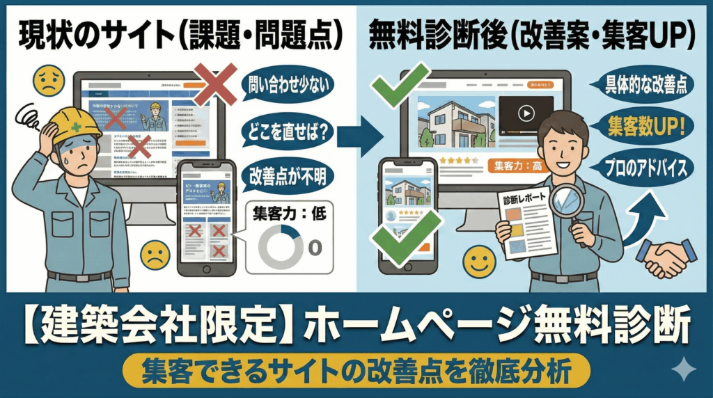 【建築会社限定】ホームページ無料診断|集客できるサイトの改善点を徹底分析