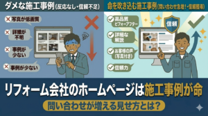 写真は明るく、高画質で、実際の生活感が伝わるアングルで撮影されたものを選びます。「こんな家に住みたい」「こんなリフォームがしたい」という感情を瞬時に引き出すことが、ファーストビューの最大の役割です。