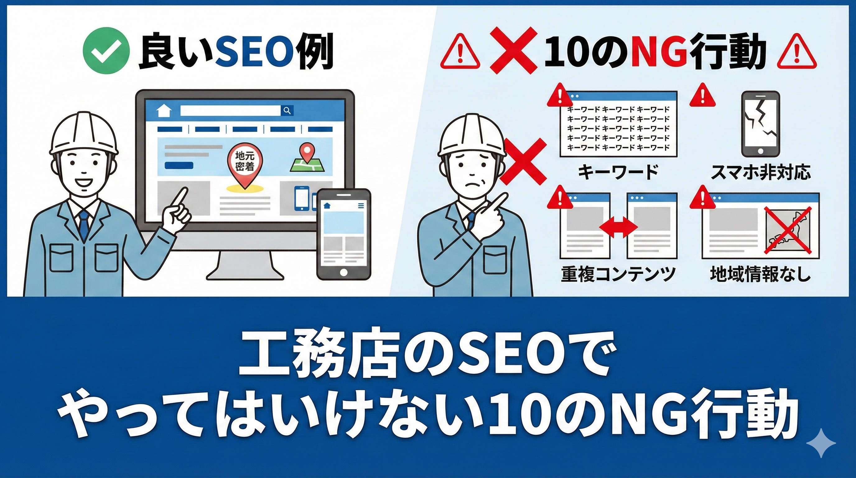 また、お客様の生の声や、実際にかかった費用、工期などの具体的なデータも、オリジナル性を高めます。他社の事例をコピーしたり、適当な写真を使ったりすることは、SEO的にマイナスになるだけでなく、著作権の問題も発生します。