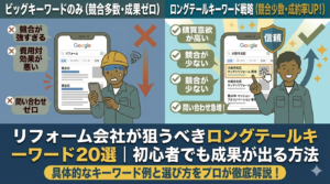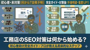 この記事では、施工事例をSEOに活かすための具体的な方法を解説します。タイトルの付け方、写真の使い方、詳細データの記載方法まで、今日から実践できる内容です。あなたの施工実績を、最強の集客ツールに変えましょう。
