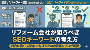 この3つの要素を押さえるだけで、施工事例のSEO効果は劇的に向上します。写真を並べて「素敵な家ができました」だけでは、検索にも引っかからず、読者の心にも響きません。